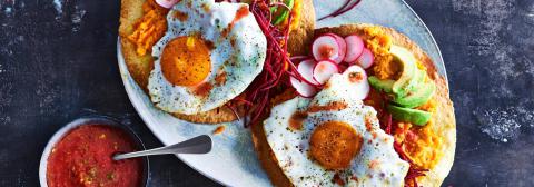 Tostada met avocado, ei & limoen-tomatensalsa